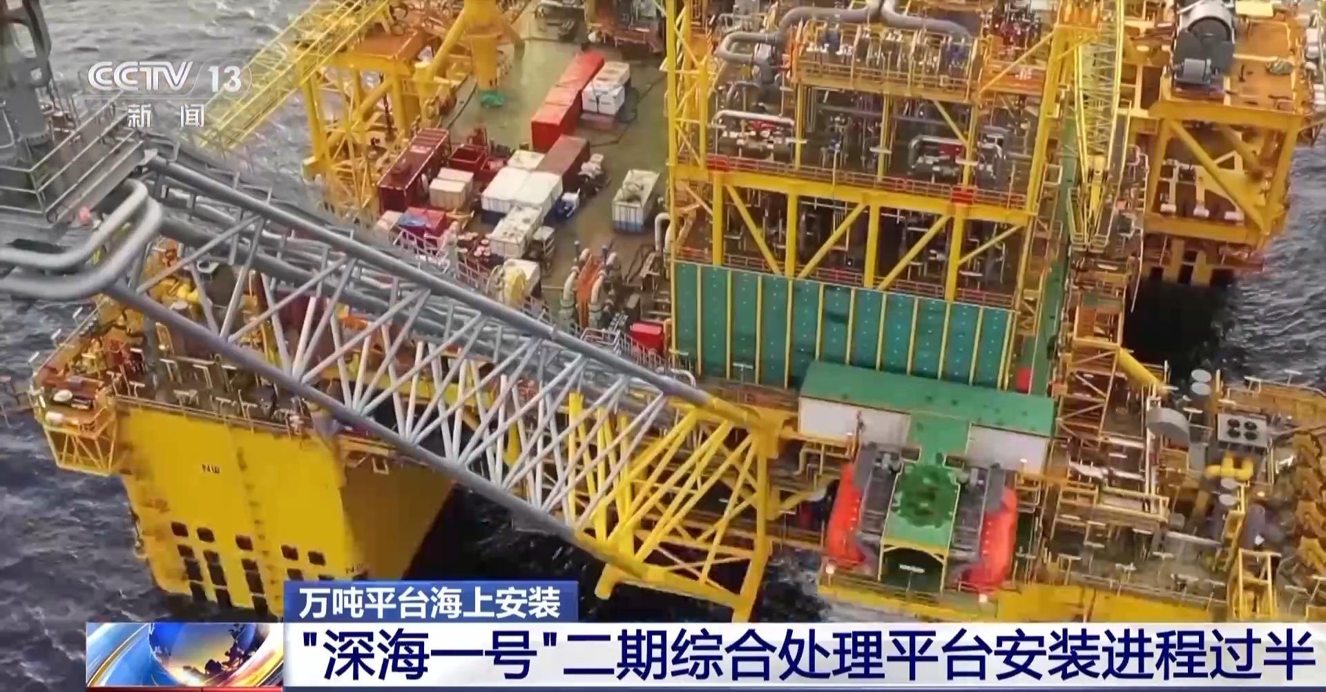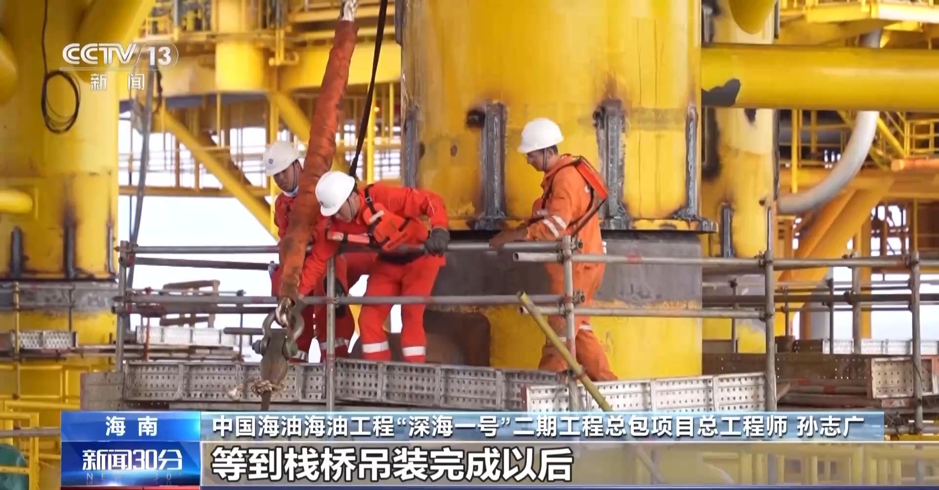 中国海油海油工程“深海一号”二期工程总包项目总工程师 孙志广:截至目前,整体安装工作量已完成过半,在焊接作业进行的同时,MRU(乙二醇回收再生处理装置)和栈桥吊装准备工作也在紧锣密鼓进行。等到栈桥吊装完成后,二期综合处理平台将与原有的崖城13-1平台连成一体,形成我国南部海域首个“四星连珠”天然气生产集群。