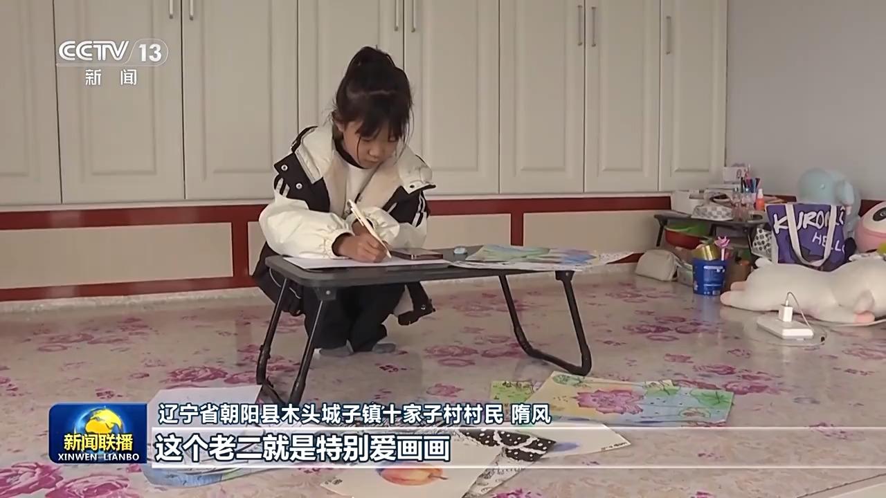 辽宁省朝阳县木头城子镇十家子村村民 隋风:我们这个老二就是特别爱画画,她就在网上看然后自己画,主要是咱农村课程太单调。