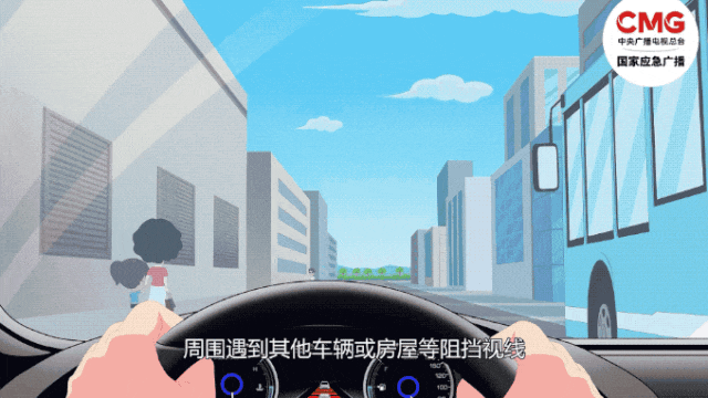当车辆行驶在路上,周围遇到其他车辆或房屋等阻挡视线,就会形成视线盲区。