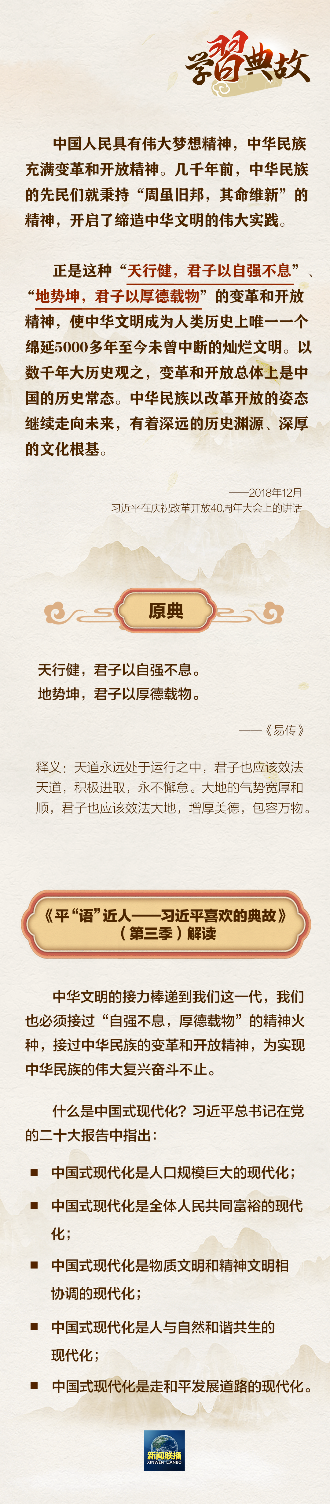 在党的二十大报告中,习近平总书记指出:“从现在起,中国共产党的中心任务就是团结带领全国各族人民全面建成社会主义现代化强国、实现第二个百年奋斗目标,以中国式现代化全面推进中华民族伟大复兴。”围绕“以中国式现代化全面推进中华民族伟大复兴”,总书记曾讲到哪些典故?一起学习↓↓↓