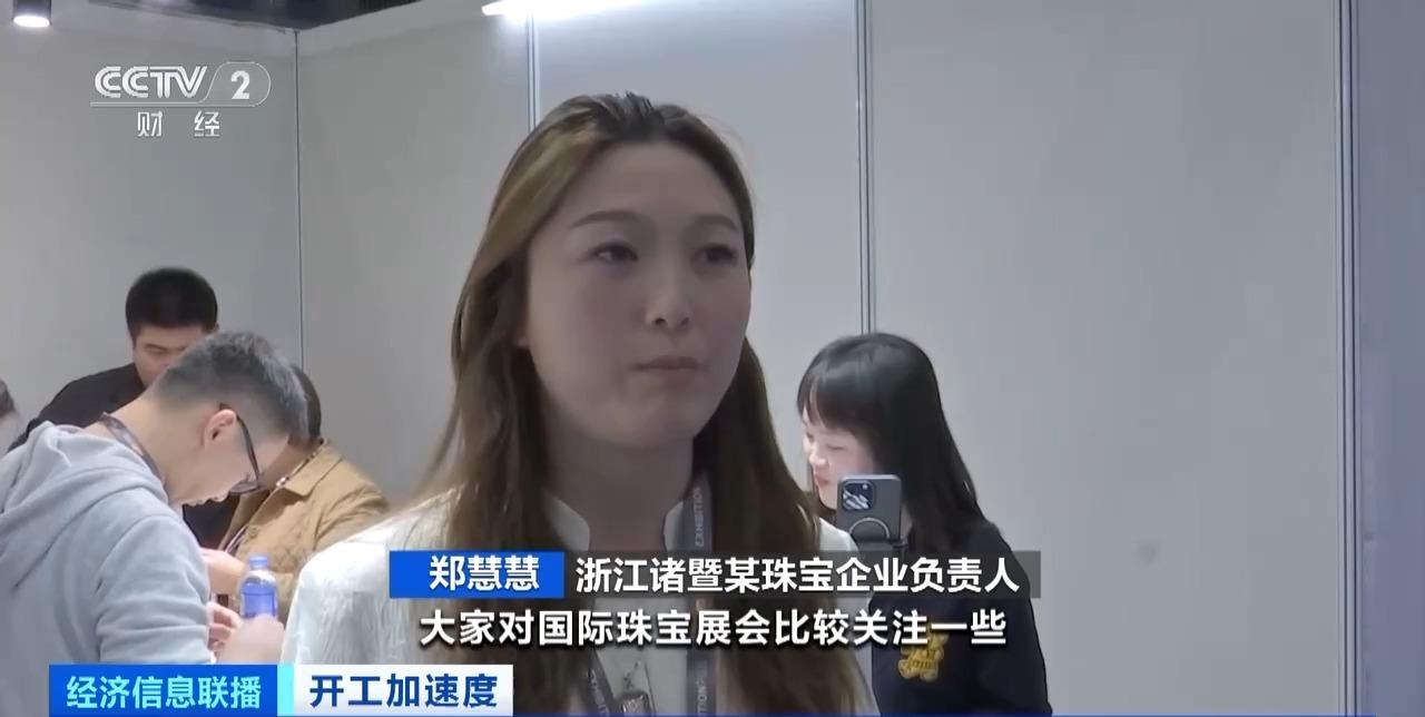浙江诸暨某珠宝企业负责人 郑慧慧:珠宝展自带流量,大家对国际珠宝展比较关注,在现场直播的时候客人的信任度也会高一些。