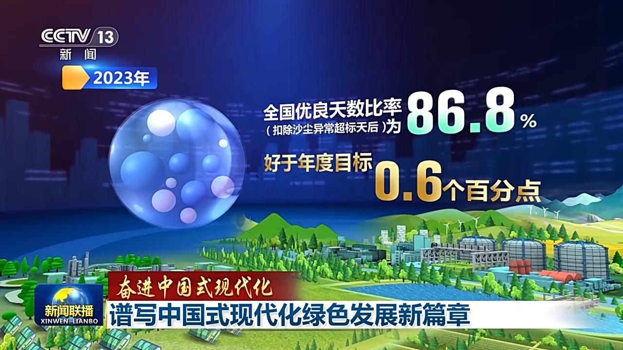 中国是世界上空气质量改善最快的国家。2023年全国优良天数比率(扣除沙尘异常超标天后)为86.8%,好于年度目标0.6个百分点;全国地表水水质优良(Ⅰ—Ⅲ类)断面比例为89.4%,同比上升1.5个百分点。