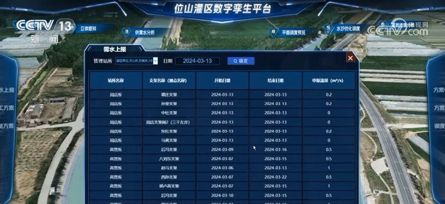 这是位山灌区的数字孪生灌区系统,20多公里外王立浩的取水信息就完整准确地显示在数字孪生智慧调度中心。