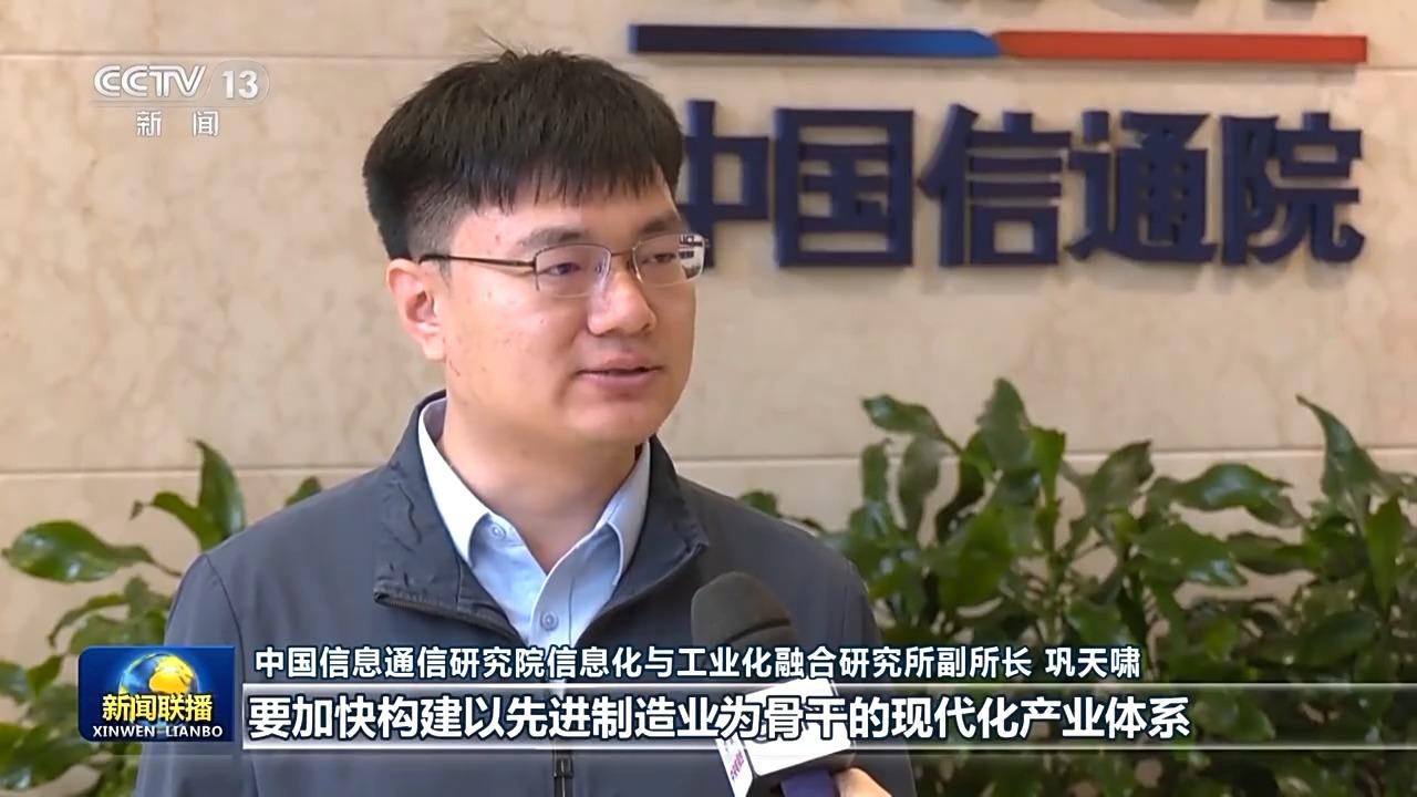 中国信息通信研究院信息化与工业化融合研究所副所长 巩天啸:习近平总书记强调要加快构建以先进制造业为骨干的现代化产业体系。培育壮大先进制造业,各地要从实际出发,根据本地的资源禀赋、产业基础、科研条件等,以科技创新推动产业高端化、智能化、绿色化升级,全面提升产业基础高级化和产业链现代化水平。