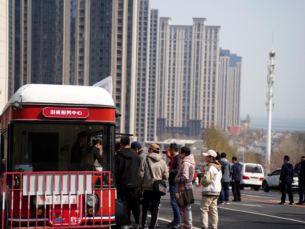 港东五街还临时设置了游客服务中心、行李驿站等