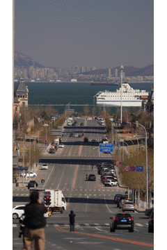从大连前往威海的客轮经过港东五街时