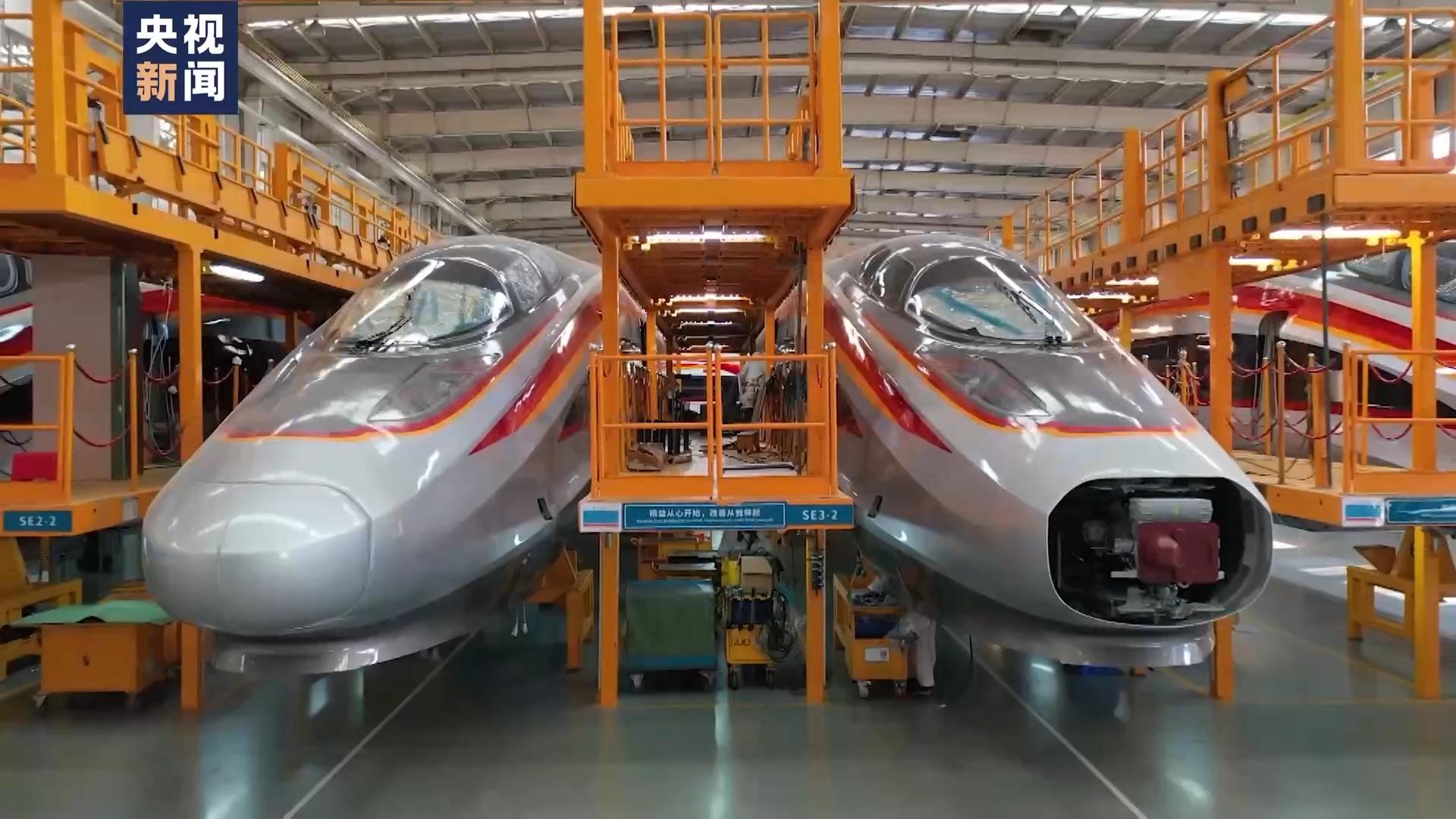 CR450科技创新工程主要包括CR450动车组和时速400公里高铁线路、桥梁、隧道等基础设施技术创新。目前,CR450动车组样车正在加紧研制,样车何时下线?列车提速需要哪些新技术?未来怎样带动相关产业发展?一起走进CR450动车组样车研制一线。
