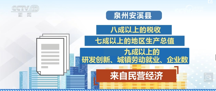 泉州的安溪县,超过八成以上的税收、七成以上的地区生产总值和九成以上的研发创新、城镇劳动就业、企业数都来自民营经济。
