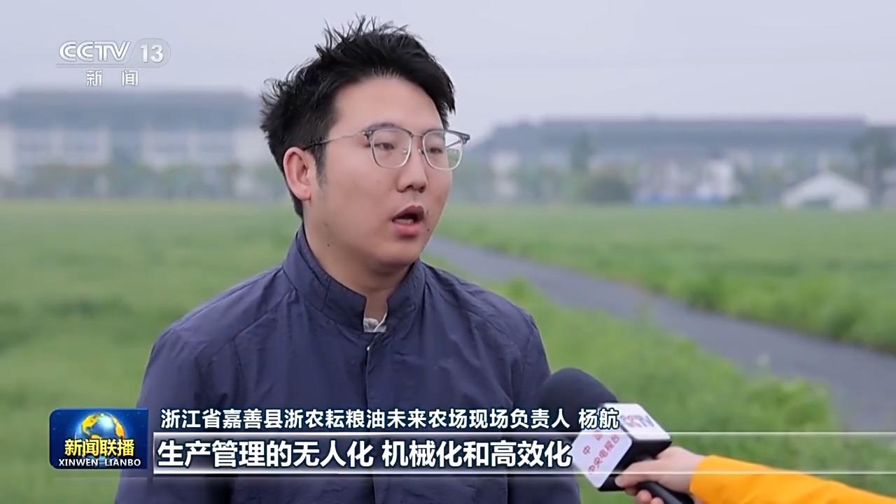 浙江省嘉善县浙农耘粮油未来农场现场负责人 杨航:生产管理的无人化、机械化和高效化,减少人工成本20%,能够做到亩均增收200元。