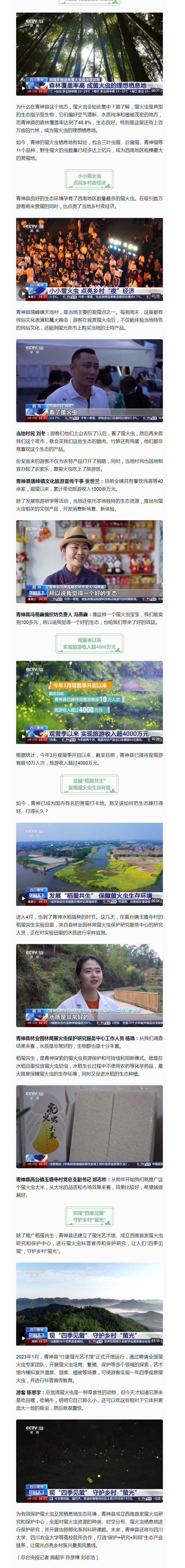 天上繁星,地上流萤,眼下我国不少地方迎来了萤火虫最佳观赏期。每年三四月份,是四川眉山青神县的赏萤高峰。成千上万的萤火虫像繁星闪烁,场面蔚为壮观,吸引了各地游客纷至沓来。