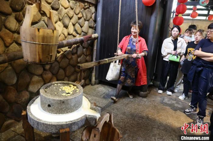 中新网衢州4月25日电(邵燕飞)“今年以来,豆腐工坊接待了许多来自新加坡、马来西亚等国家和地区的游客,他们参观完后,感到非常惊讶。因为他们从未了解过如此全面的豆腐文化,对我们的古法技艺十分认可。”4月25日,在浙江衢州江山廿八都镇,廿八都豆腐工坊负责人张君君受访时说。