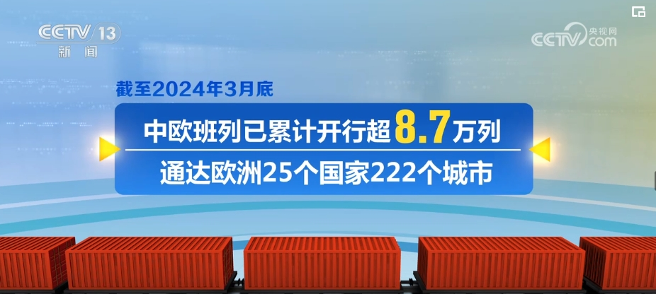2024年一季度,中欧班列累计开行4541列、发送货物49.3万标箱,同比分别增长9%、10%。截至2024年3月底,中欧班列已累计开行超8.7万列,通达欧洲25个国家222个城市。