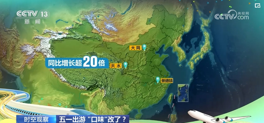 从出游热力图上来看,天水、景德镇、秦皇岛、开封、泰安、湖州、烟台等成为当时的热门旅游目的地。其中,天水同比增长超二十倍。而且,各地吸引游客也是各有新招。