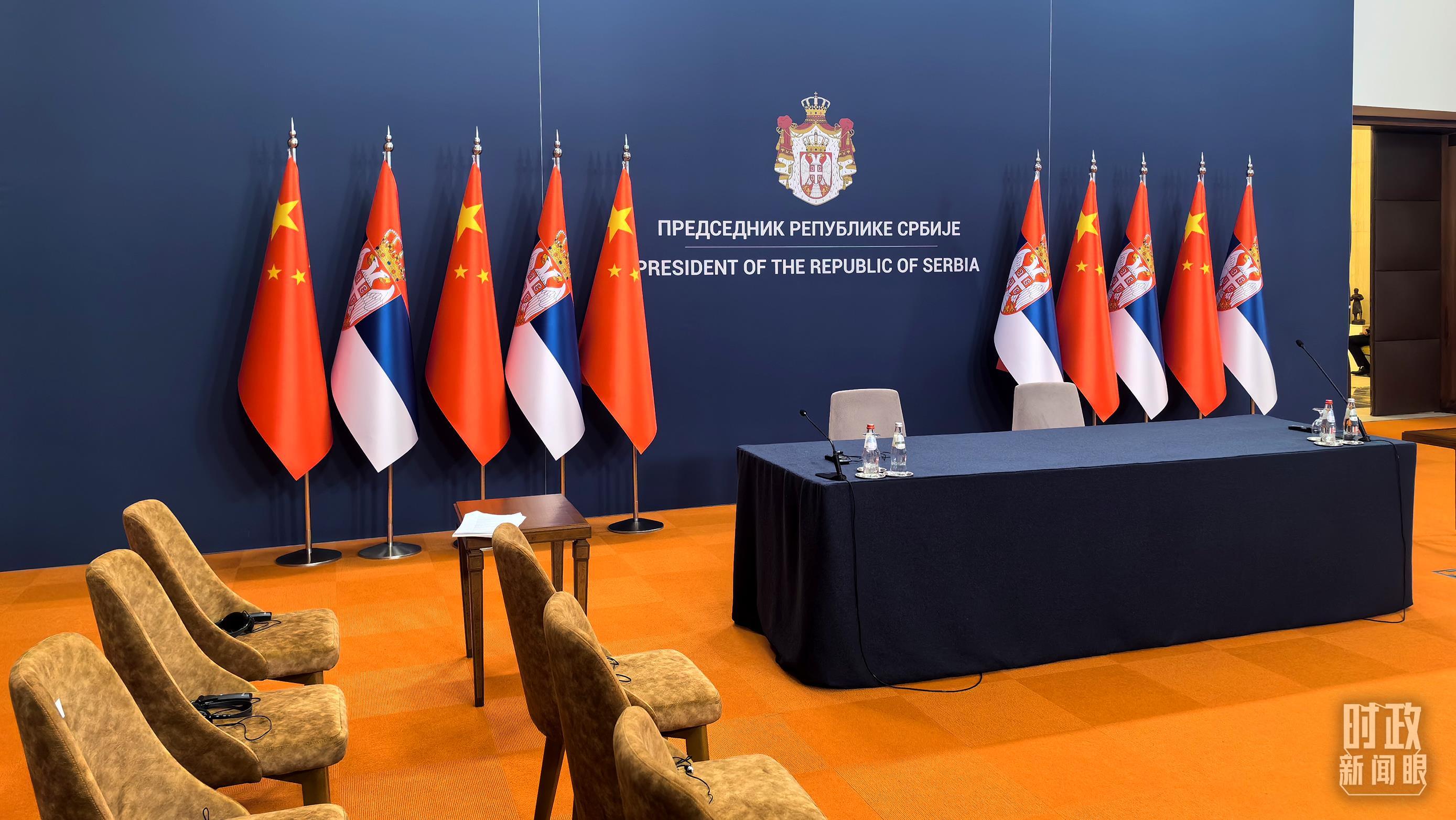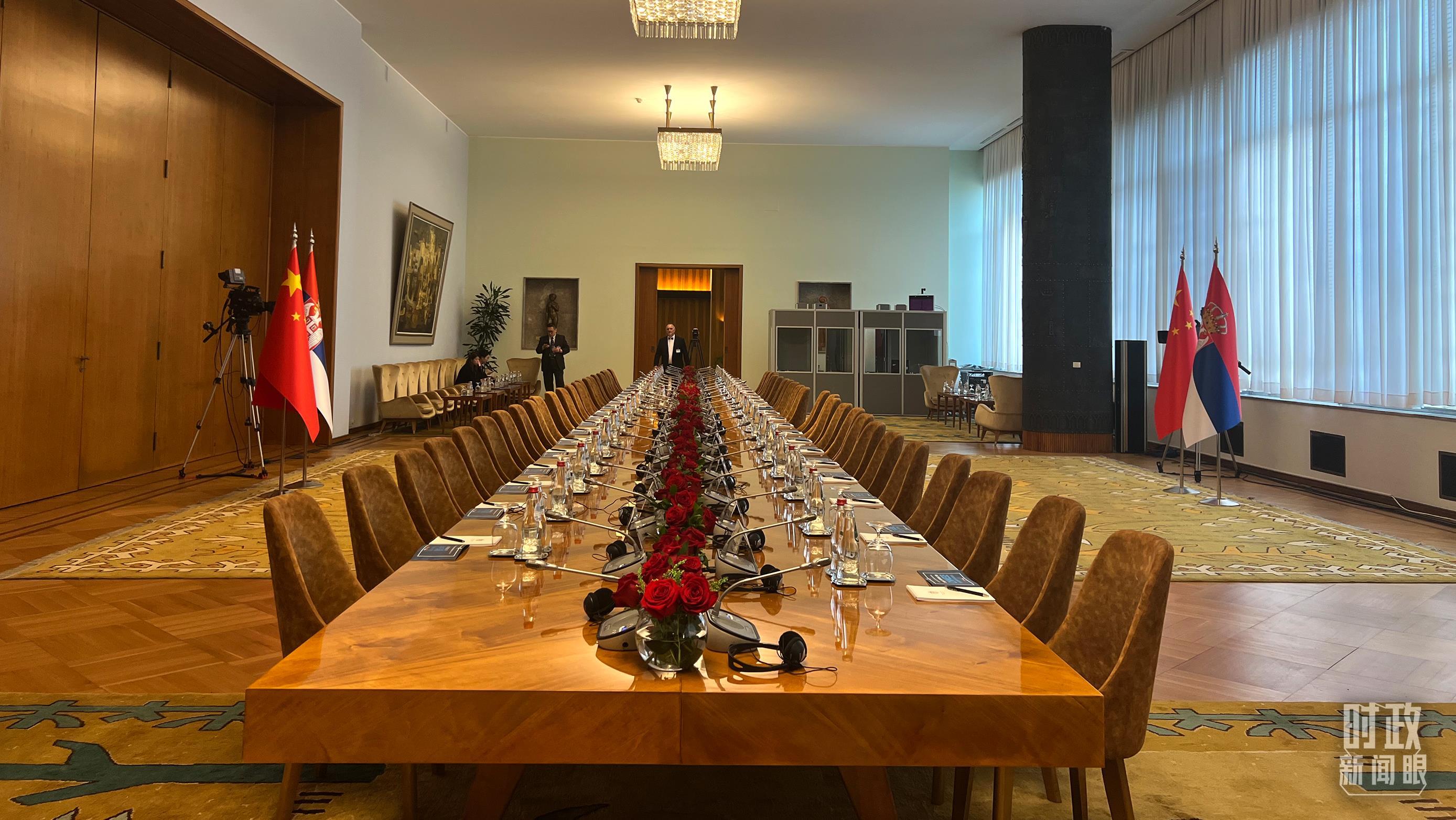 △5月8日上午,习主席同武契奇总统举行小范围会见,这是会见开始前的现场。(总台央视记者李增仁拍摄)