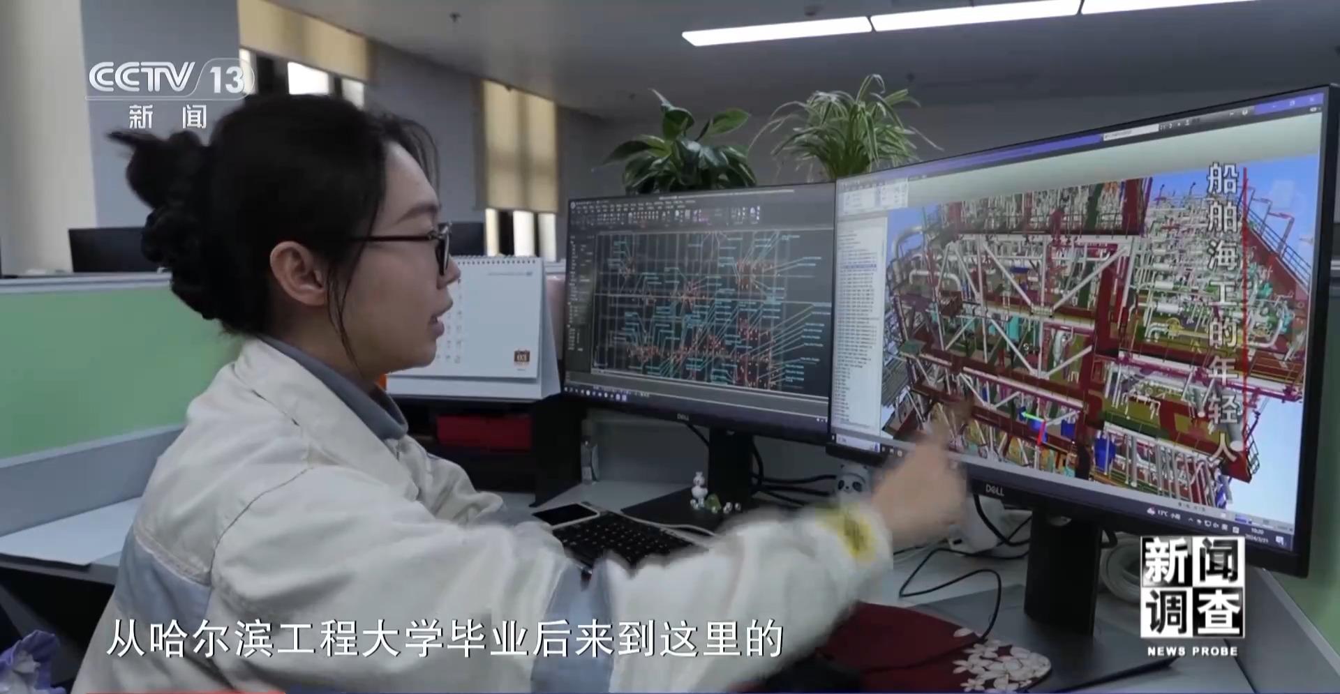 电仪工程师于彤就是2019年从哈尔滨工程大学毕业后来到这里的。刚入职不久的于彤开始接触海上浮式生产储卸油平台,模块中电气和仪表系统如何设计是她的工作内容。到了2022年,这艘大吨位的海上浮式生产储卸油平台4个模块的电力仪表系统设计工作交给了于彤。