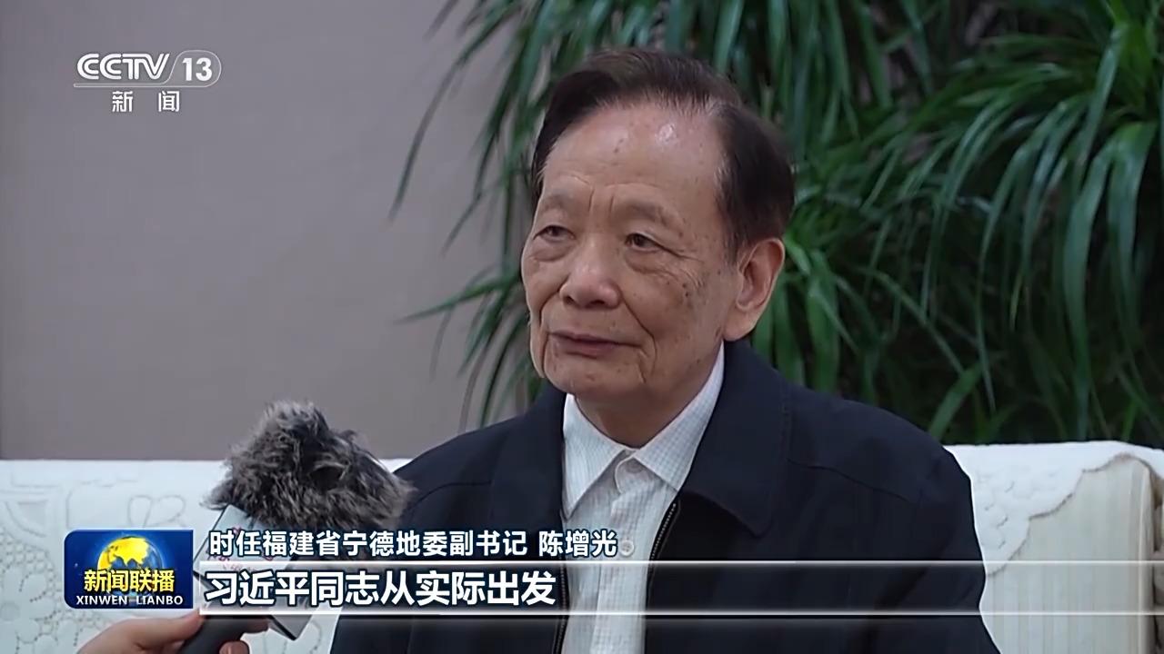 时任福建省宁德地委副书记 陈增光:习近平同志从实际出发,对闽东的发展有清醒的思考,基于地域特点和资源优势,他提出“靠山吃山唱山歌,靠海吃海念海经”,稳住粮食,山海田一起抓,农、林、牧、副、渔全面发展。我们虽然很困难,但还有很多优势,大家听完以后打开了工作思路。