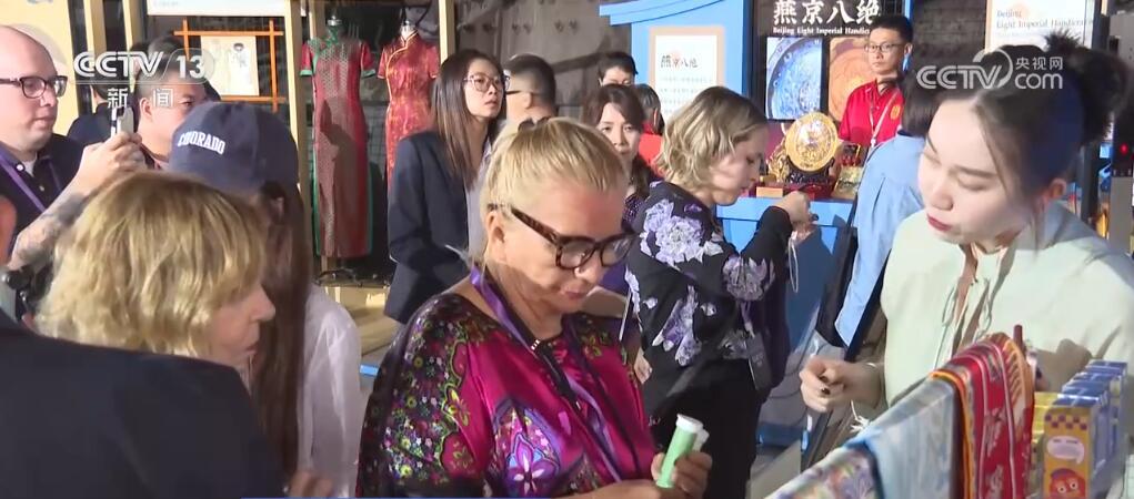 5月24日,北京入境旅游发展大会开幕式在首钢园举办,来自全球的百名旅行商代表前来参展,中外旅游企业进行点对点洽谈。现场搭建了非遗展区,京式旗袍传统制作技艺等特色非遗项目吸引外国旅行商互动体验,不少人还现场选购丝绸、茶叶等商品。