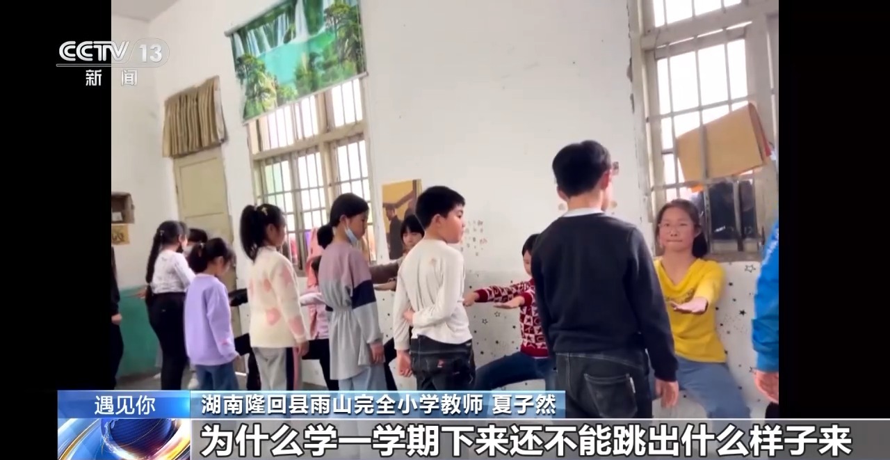 湖南隆回县雨山完全小学老师 夏子然:跟他们跳舞,任何时候都是很难忘的回忆,每天都是限定版,我会用拍视频的方式给记录下来,在课后一个一个放大,去观察他们的状态和跳舞的动作,在第二节课,再做出相对应的调整。跳舞能够让他们放松,跳舞能够让他们变得开心,我最初的目的就达到了。