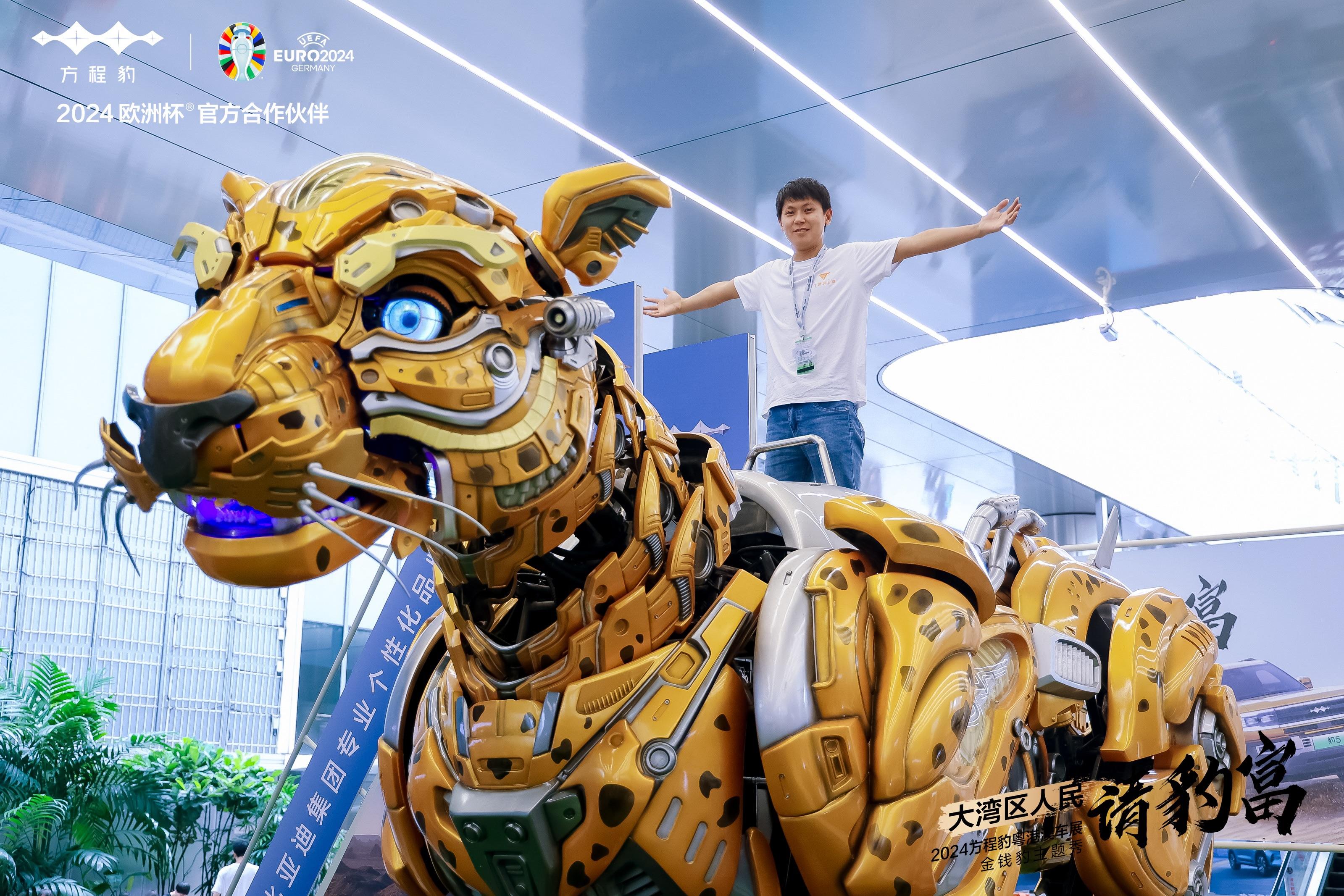由巨兽装置艺术家肖迪(兰帕德机械金钱豹设计师)打造,肖迪本身是机甲迷,也是科幻迷,每年都会创作一个作品,每次创作都会在8个月前进行构思,创作出来发现与胡杨金豹5不谋而合,是一次美妙的巧合,本次粤港澳车展也受邀参加方程豹展区活动,并邀请真实下定车主登“豹”体验。