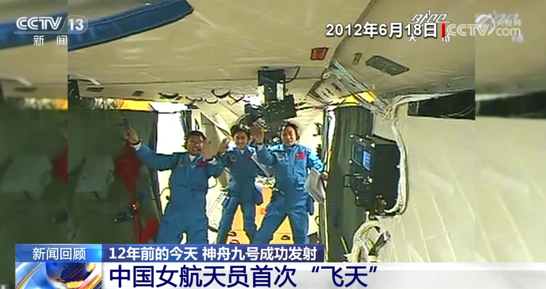 2012年6月16日,长征二号F遥九运载火箭腾空而起,景海鹏、刘旺、刘洋3名航天员驾乘神舟九号飞船奔向太空,航天员乘组由第二次执行飞行任务的景海鹏和首次参加飞行任务的刘旺、刘洋组成。刘洋成为我国首位飞天女航天员,填补了我国女性航天飞行的空白。