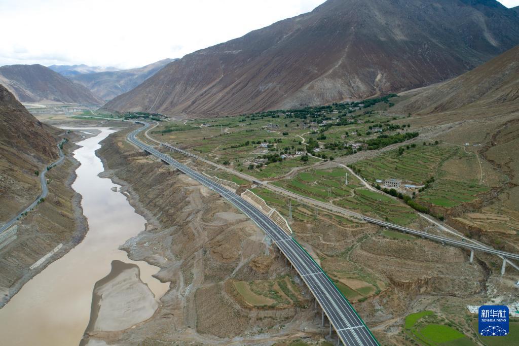 拉萨至日喀则高等级公路景观(无人机照片,6月27日摄)。新华社记者 旦增尼玛曲珠 摄