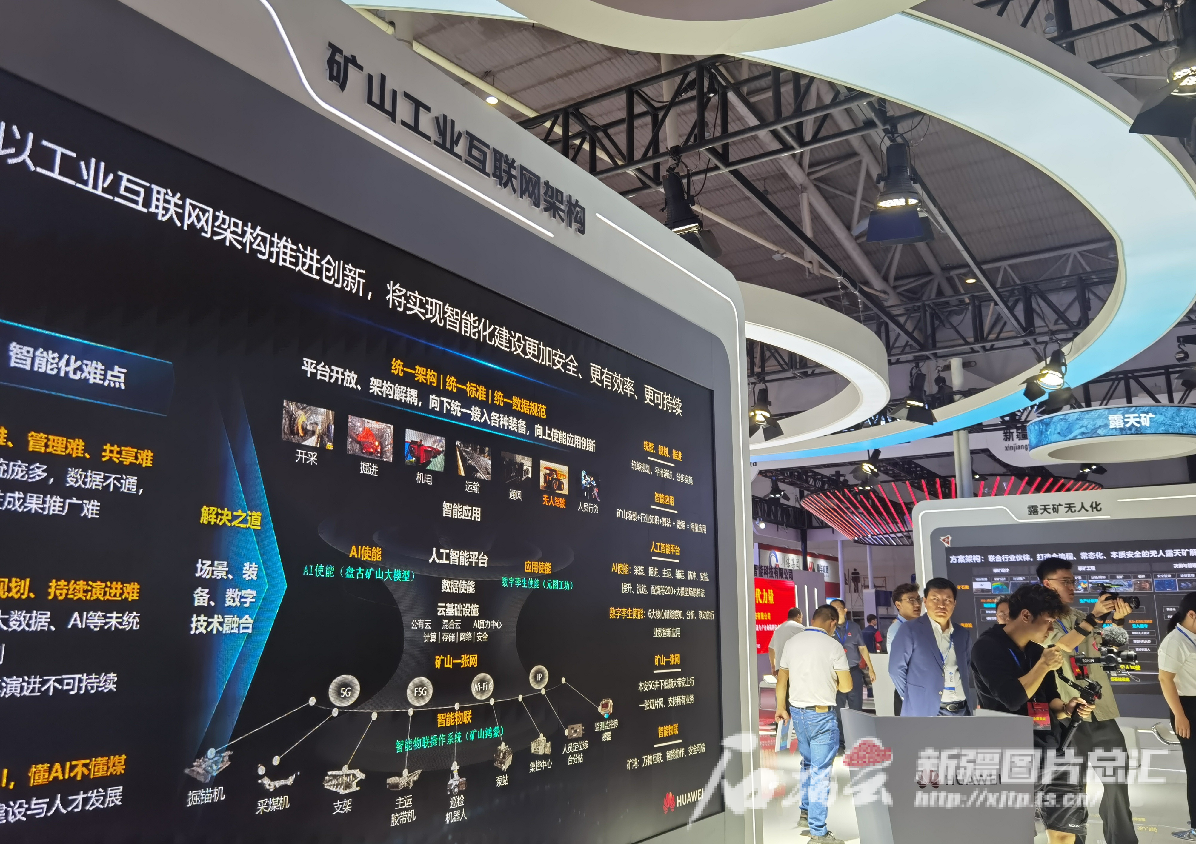 7月18日,在新疆国际会展中心华为技术有限公司展出的矿山工业互联网架构,吸引不少客户咨询。天山网-新疆日报记者 于江艳摄