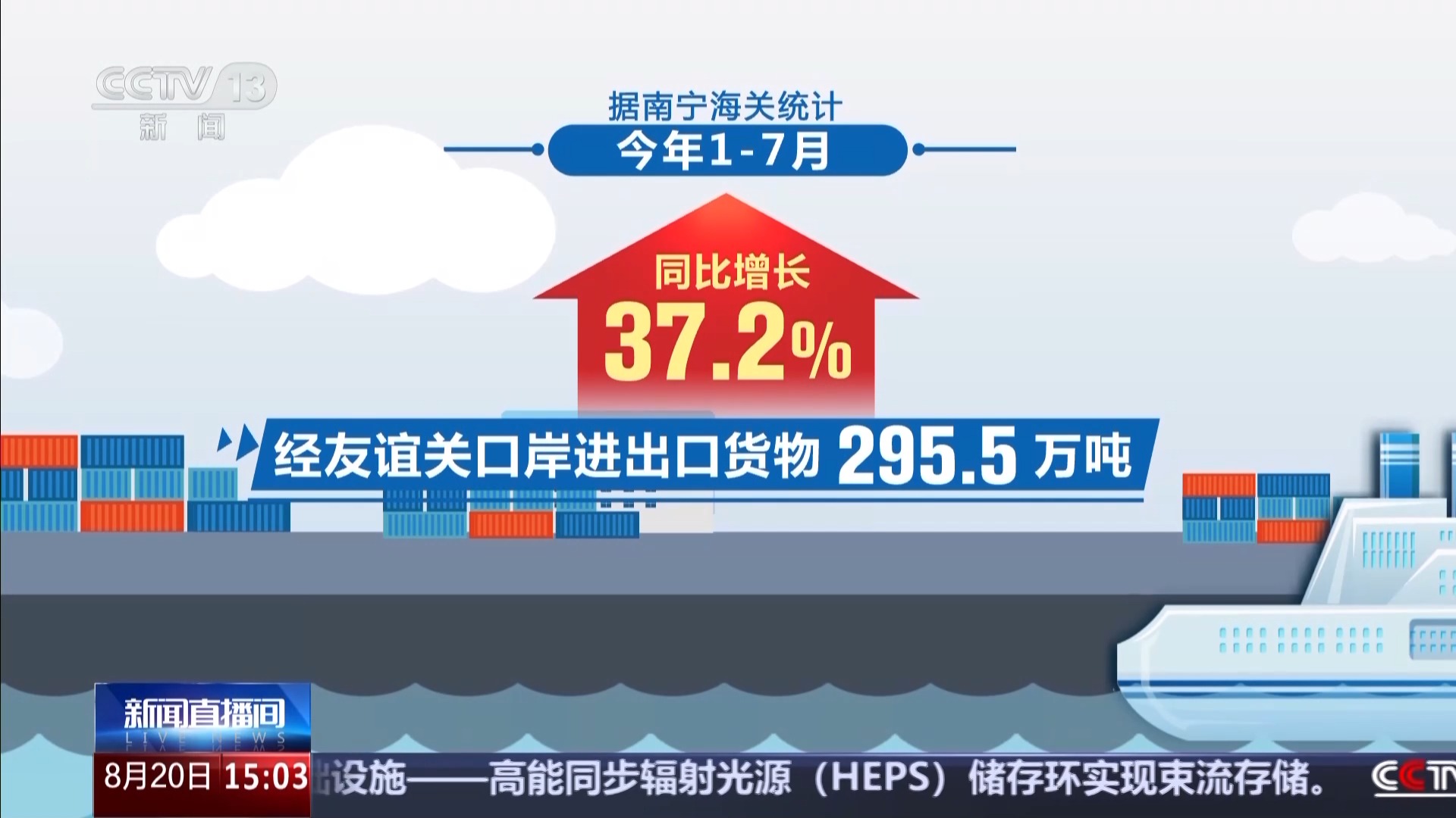 据南宁海关统计,1—7月,经友谊关口岸进出口货物295.5万吨,同比增长37.2%。其中对越南2128.5亿元,同比增长28%。进出境车辆27.3万辆次,同比增长17.1%。