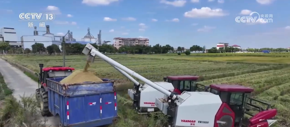 眼下,江西南昌的95万亩中稻相继成熟,农户们抢抓晴好天气组织农机收割稻谷。安义县种粮大户孙龙星今年种植了430亩中稻,针对南方气温高且持续时间长的特点,今年他更换了优质抗高温水稻品种。