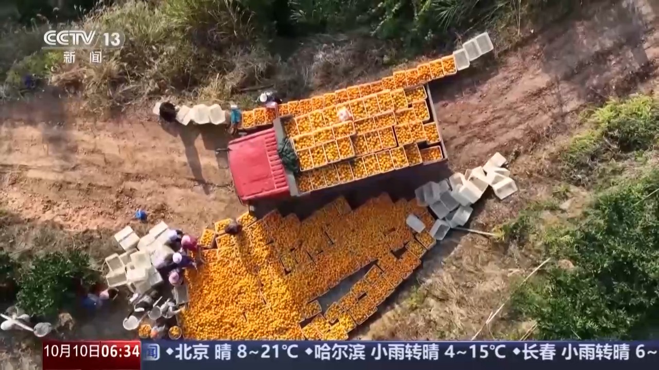 赣南脐橙是江西赣州重要的地理标志产品,近期,赣州市于都县2万亩早熟脐橙陆续挂果成熟,工人在果园集中采摘,一派丰收景象。