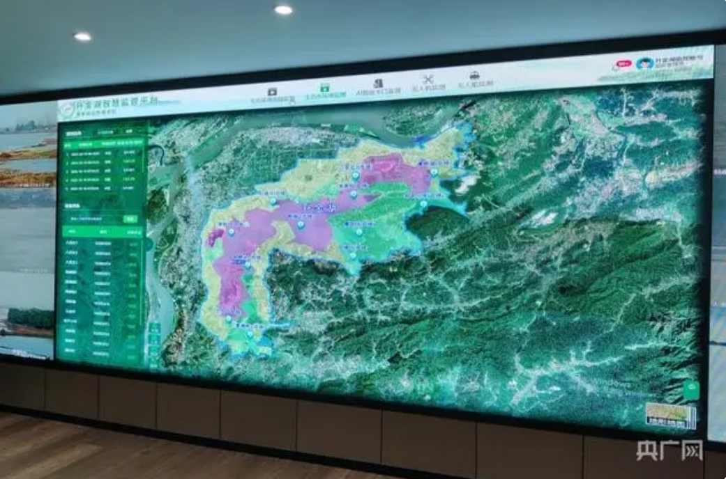 升金湖保护区智慧监管平台可视化展示系统(央广网记者 赵家慧 摄)