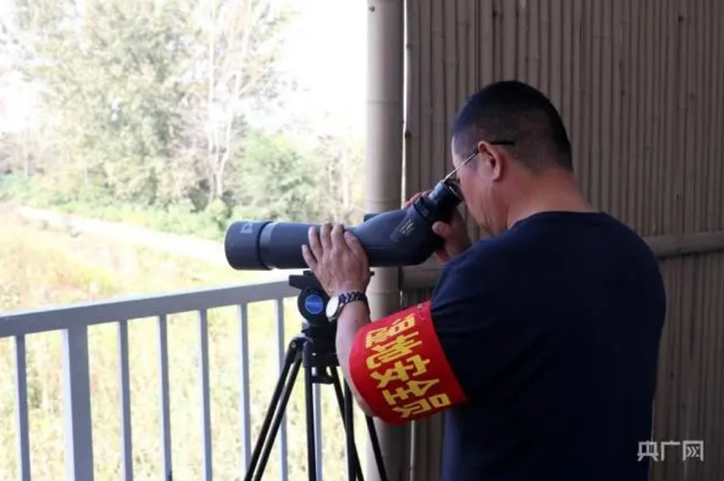 陈永胜正在观鸟(央广网记者 徐鹏 摄)