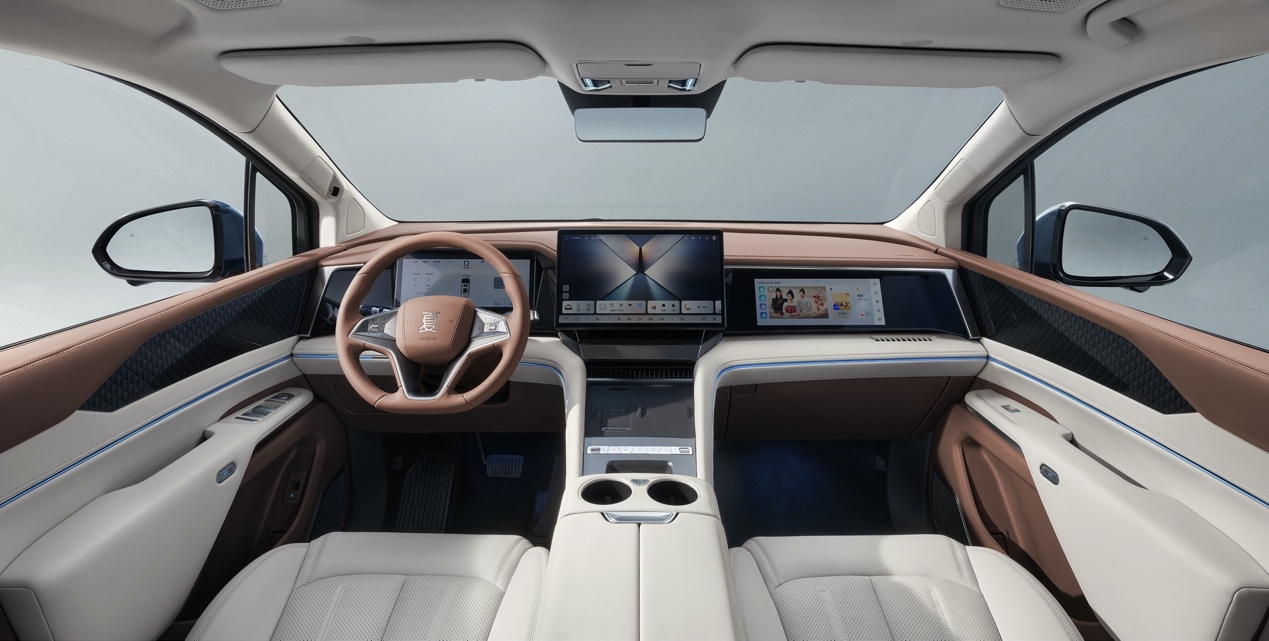 内饰上,夏采用王朝新一代内饰设计语言,从皇家建筑形制中汲取灵感,贵气天成,完美诠释华夏文化中的礼仪庄重以及秩序井然之美。更提供两款内饰配色可选,檀棕米双色内饰,温馨雅致,适合品质家庭;远山黛双色内饰,大气持重,适合政企商用。