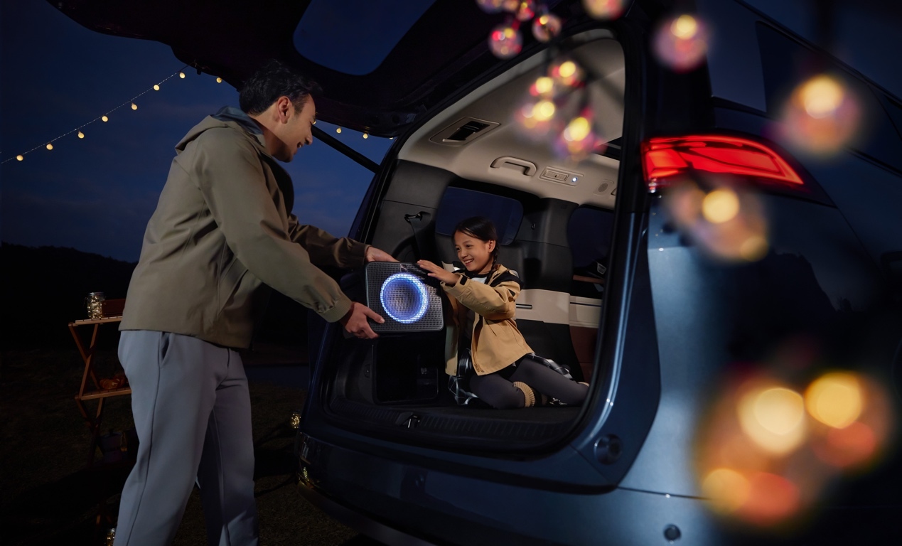 值得一提的是,夏的第三排音箱可单独拆卸为户外蓝牙音箱,电池容量15000mAh,外放功率达170W,续航长达9小时,支持车友双音箱互联、外接麦克风,车载车充,无需单独充电,极大拓展了户外影音娱乐玩法。