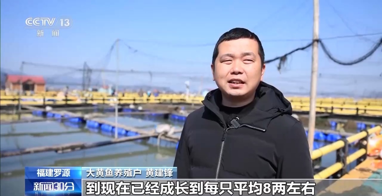 大黄鱼养殖户 黄建锋:这次捕获的鱼是2023年春季下的鱼苗,到现在已经成长到每只平均8两左右。