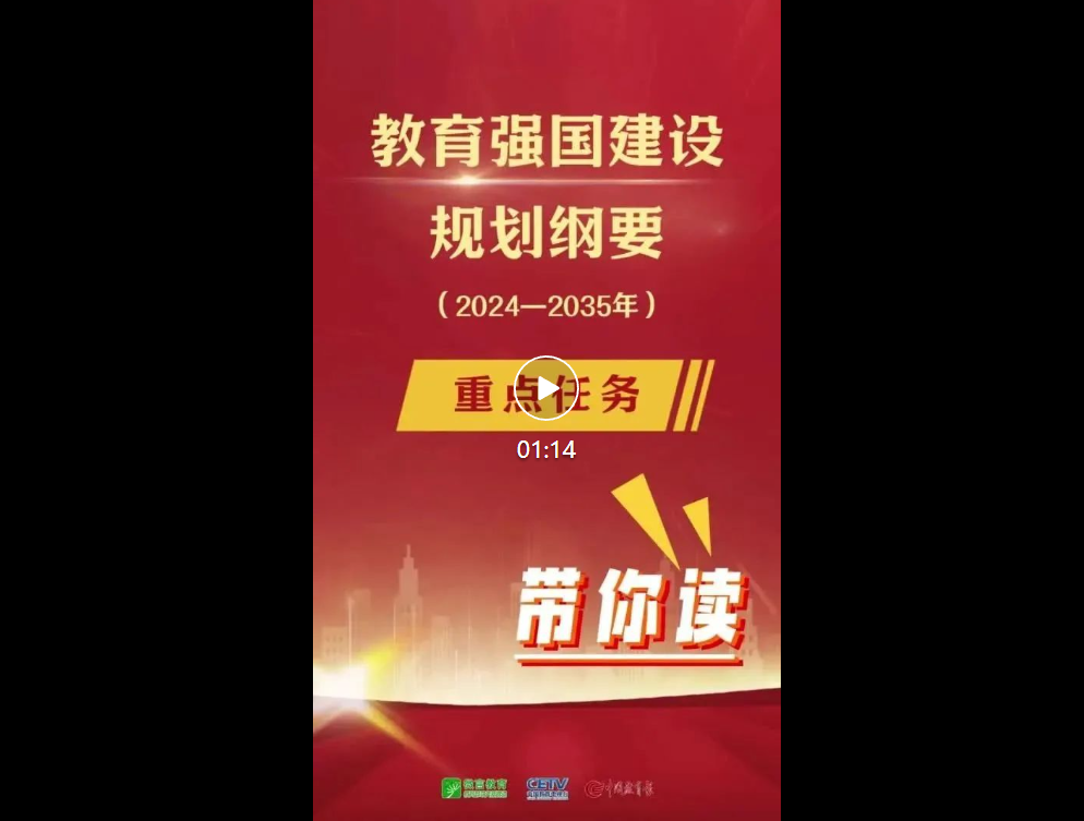 《教育强国建设规划纲要(2024—2035年)》(以下简称《纲要》)日前正式发布,明确了38条重点任务。教育部新媒体矩阵推出“解码《纲要》”栏目逐一解读。今天,解码第八条“推动义务教育优质均衡发展和城乡一体化”,一起来看3个视频——