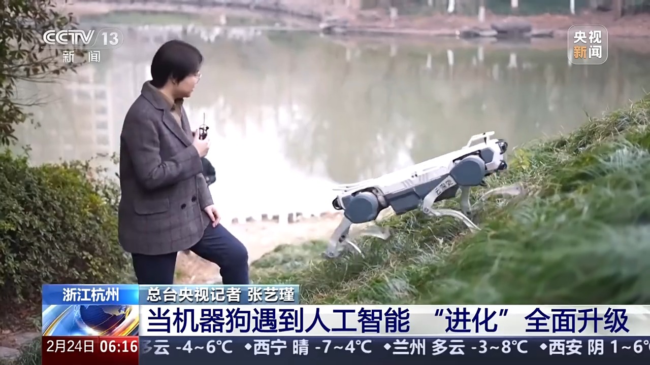 杭州云深处科技研发总监 周燕鑫:我们现在更多是基于AI的、训练的、更先进的AI算法,相当于有自身的学习能力,不像以前是非常固定的,基于一个场景或一种步态。它的运动能力得到了很大提升,以前不能去的地方或者不好去的地方,现在都能从容应对,对我们项目的交付和订单量都是有很大的帮助。