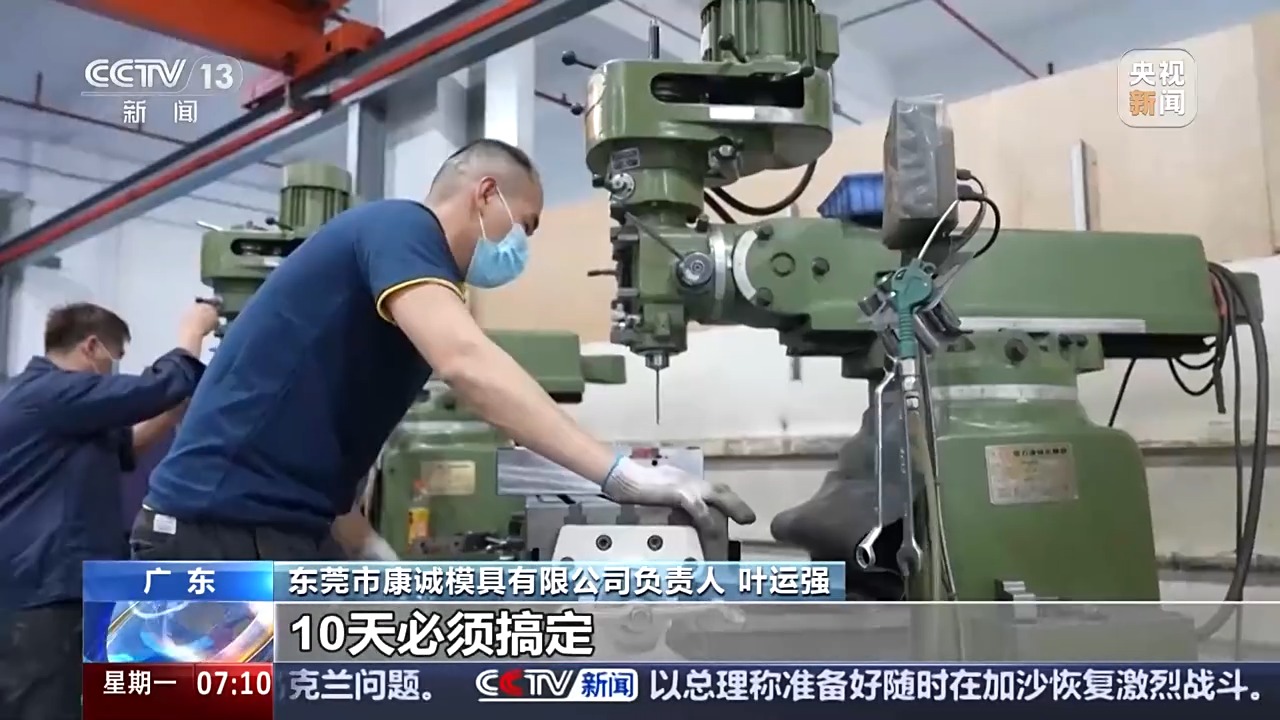 东莞市康诚模具有限公司负责人 叶运强:我是接了13套模具,他们就说这个订单很急。我们当时听到这件事都感觉义不容辞,我们连价钱也没有去说,就说把事情一定要干好,10天必须搞定。