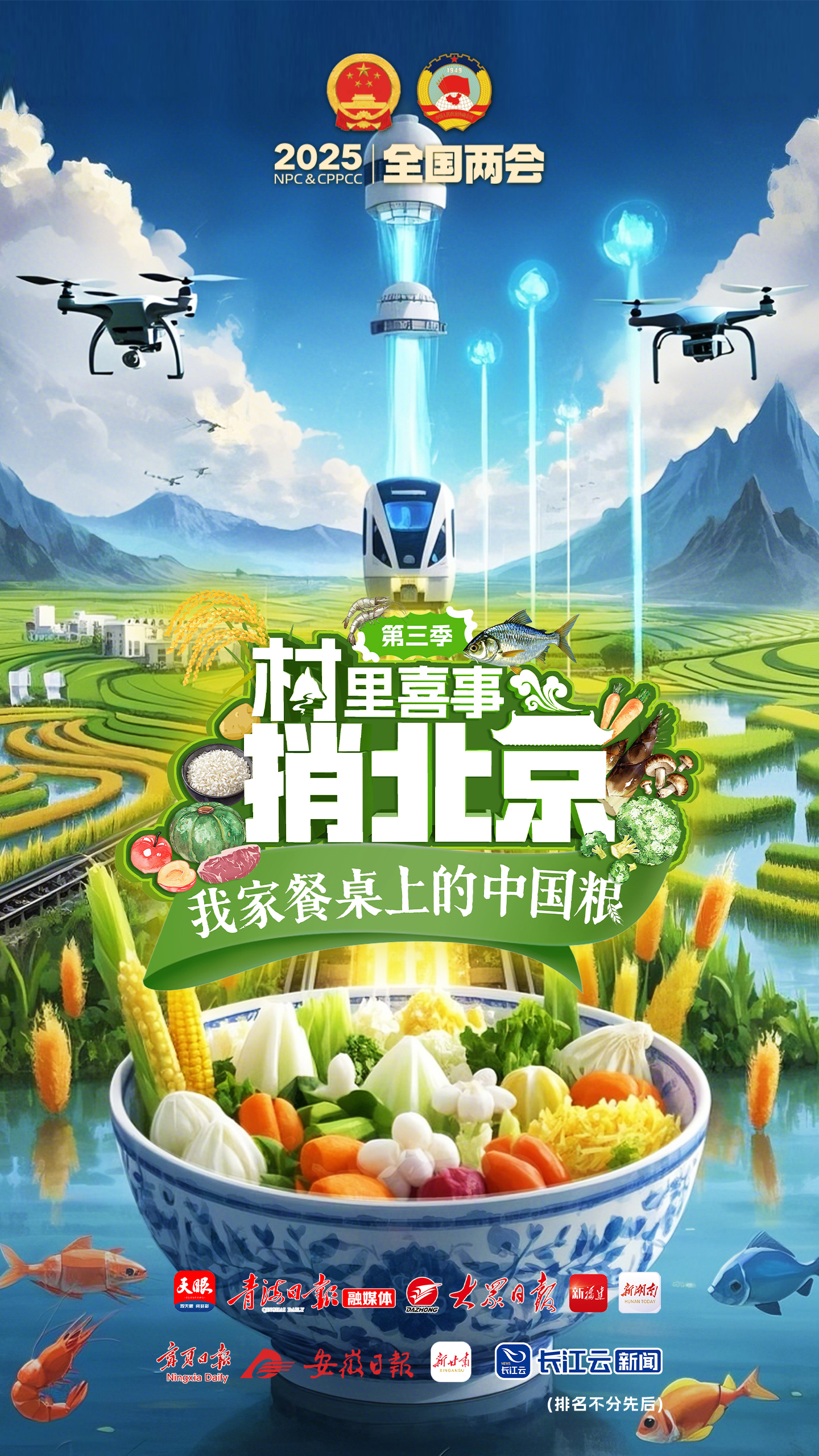 2025年全国两会期间,贵州日报天眼新闻联合安徽日报、福建日报、大众新闻、湖北长江云新闻、新湖南、新甘肃、青海日报、宁夏日报共计9省(自治区、直辖市)媒体共同推出“村里喜事捎北京•我家餐桌上的中国粮”2025年全国两会跨省联动报道。