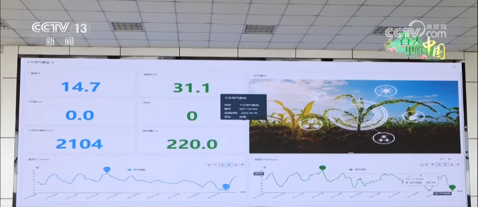 这样操作得以实现,依托的是一张智能物联网。这张物联网链接了多台土壤分析仪、苗情监测仪、气象监测站等智慧农业设备,将麦田里的各种数据实时传送到智能电子大屏上。农技专家通过实时数据,再结合田间巡检无人机搭载的多光谱监测系统反馈的苗情状态,以及农技人员田间实地调查情况,形成一套春季田管指导方案。比如,刚刚提到的修复冻伤小麦,就是通过监测系统捕捉到了缺肥发黄的田块,才得以精准、高效地补施肥料。