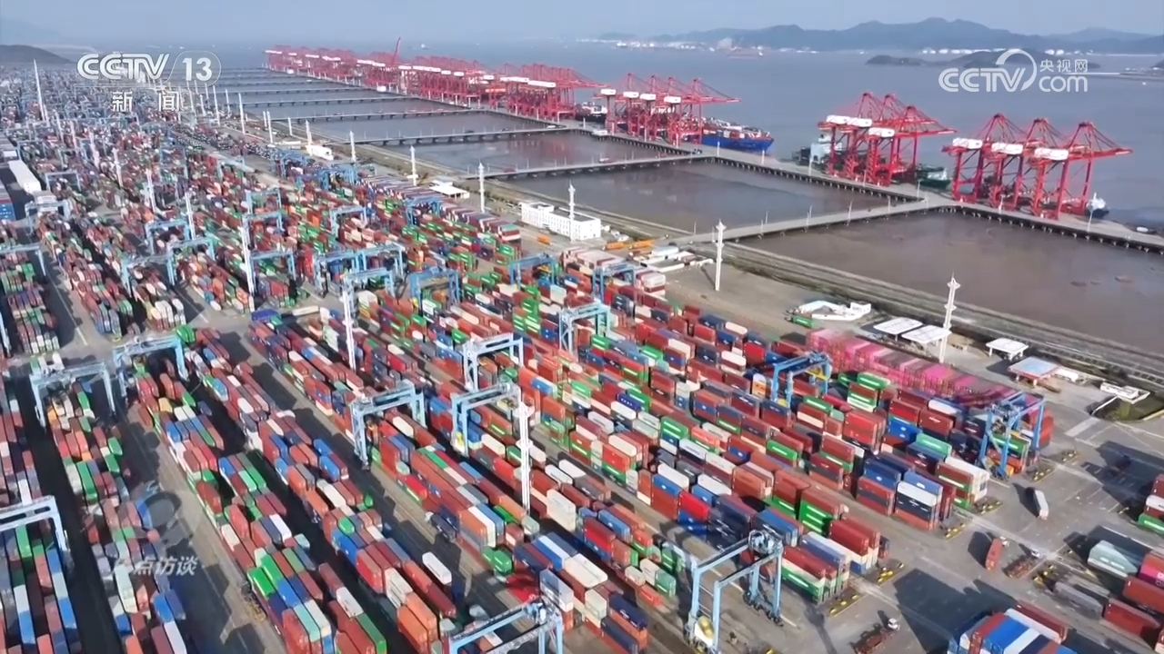在宁波舟山港梅山港区,满载着集装箱的远洋货轮整装待发。工作人员告诉记者,今年开年以来,码头一直非常繁忙。