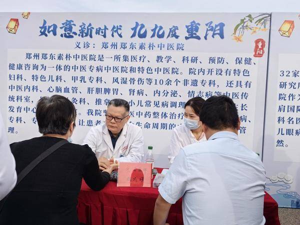 重阳秋色暖,敬老情更浓,重阳佳节如期而至。为弘扬中华民族尊老敬老的传统美德,关爱老年人身体健康,营造爱老、敬老、助老的良好氛围,10月11日,在刘文贵院长的带领下,素朴中医院大夫和医护人员组成义诊团队,参加郑东新区如意湖文化广场举行的“如意新时代·九九度重阳”主题活动,为市民朋友进行义诊。
