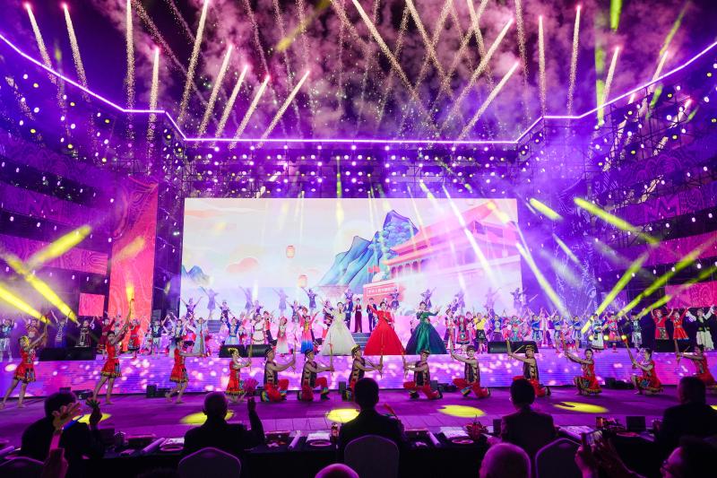开幕式上,主题灯光秀点亮夜空,拉开文化盛宴的序幕。歌舞《美丽中国》以磅礴气势展现山河壮美,非遗创演秀《传承》勾勒民族和美画卷。随后,三组西部民歌联唱与原创舞蹈《苗岭僰魂》、苗韵情景舞秀《“苗”绘锦绣》、情景歌舞《苗如春风踏歌来》等节目交织上演,生动呈现兴文僰人文化、苗族风情及自然风光。嘉宾蒙古族歌手乌兰图雅献唱经典歌曲《站在草原望北京》《火辣辣的情歌》《套马杆》,将晚会推向高潮,最终在《爱我中华 从兴出发》的激昂旋律中圆满落幕。整场演出通过多平台直播,线上线下共赏苗乡文化风采。