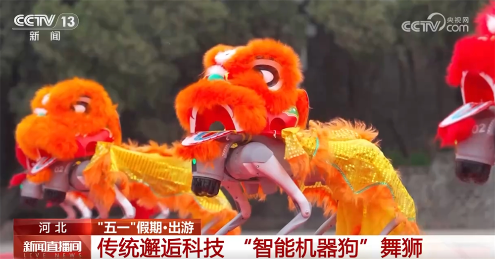 5月1日,在老龙头景区,醒狮技艺与智能机器狗的互动表演《智舞雄狮》吸引了大批游客驻足、参与,4台搭载智能交互系统的机器狮与醒狮队同台献艺,现场游人沉浸式体验“长城+科技”的文旅新产品。