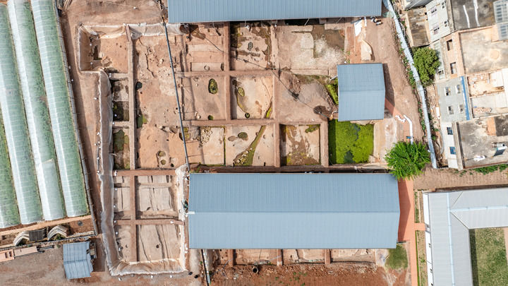 从空中俯瞰云南河泊所遗址现场(无人机照片,2025年4月24日摄)。新华社记者 胡超 摄