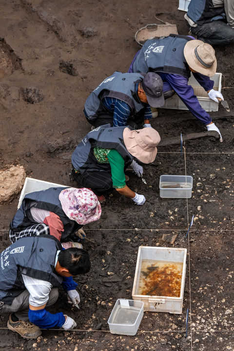 考古工作者在云南河泊所遗址现场进行清理发掘工作(2025年4月24日摄)。新华社记者 胡超 摄