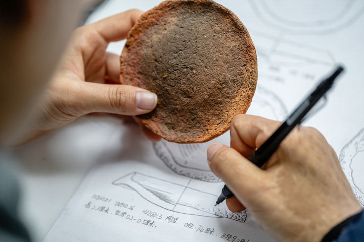云南省文物考古研究所工作人员在绘制器物标本(2025年4月24日摄)。新华社记者 胡超 摄