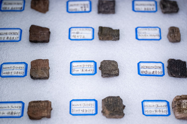 与简牍同步出土的还有大量封泥。蒋志龙介绍,河泊所遗址已发现2000多枚封泥,主要出土于河道边缘的灰烬堆积中,大部分是官印封泥,还有私印封泥、道教封泥、无字封泥等。