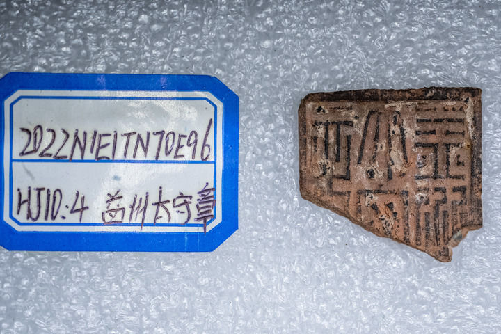 云南省昆明市晋宁区河泊所遗址出土的官印封泥(2025年4月24日摄)。新华社记者 胡超 摄