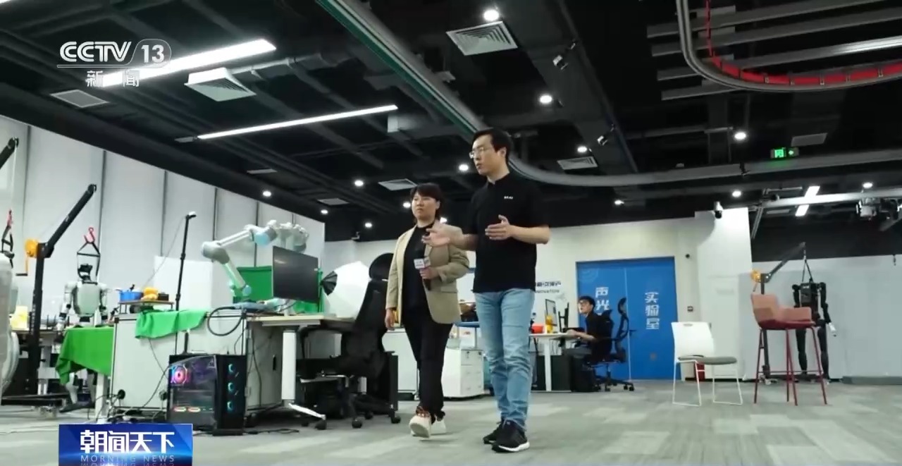 一栋融合现代与历史风格的建筑,这里就是智源研究院所在地,与清华大学为邻,同北京大学相望。当记者来到这里的时候,正赶上20多个品牌的机器人都在这里进行测试。这里每天可以采集1.8万条高质量数据,用于具身大模型的训练。