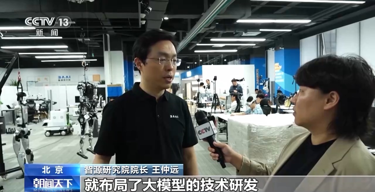 智源研究院院长 王仲远:我们早在六年前就布局了大模型的技术研发,在今年我们发布了“悟界”系列大模型,并且我们将所有的科研成果都进行了开源,所以从发布之后,国内非常多的这些机器人公司就主动的联系我们,跟我们建立了合作的关系。